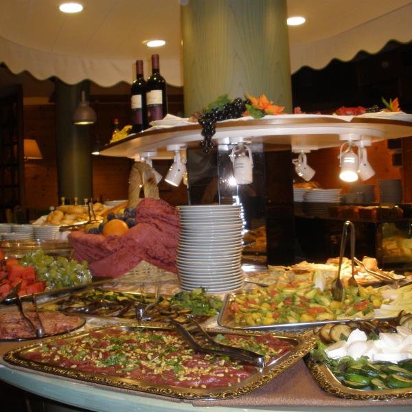 La sera, a cena, vi attende al ristorante una sfilata di delizie che vanno dagli antipasti, ai primi, ai secondi di carne e pesce e, dulcis in fundo, a dessert fatti in casa. Il servizio ristorante prevede ricco buffet aperto con griglia in sala da pranzo.